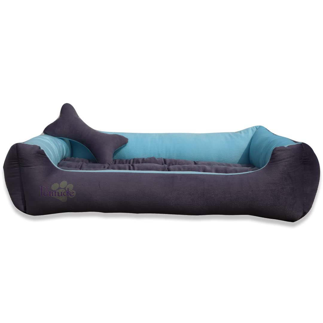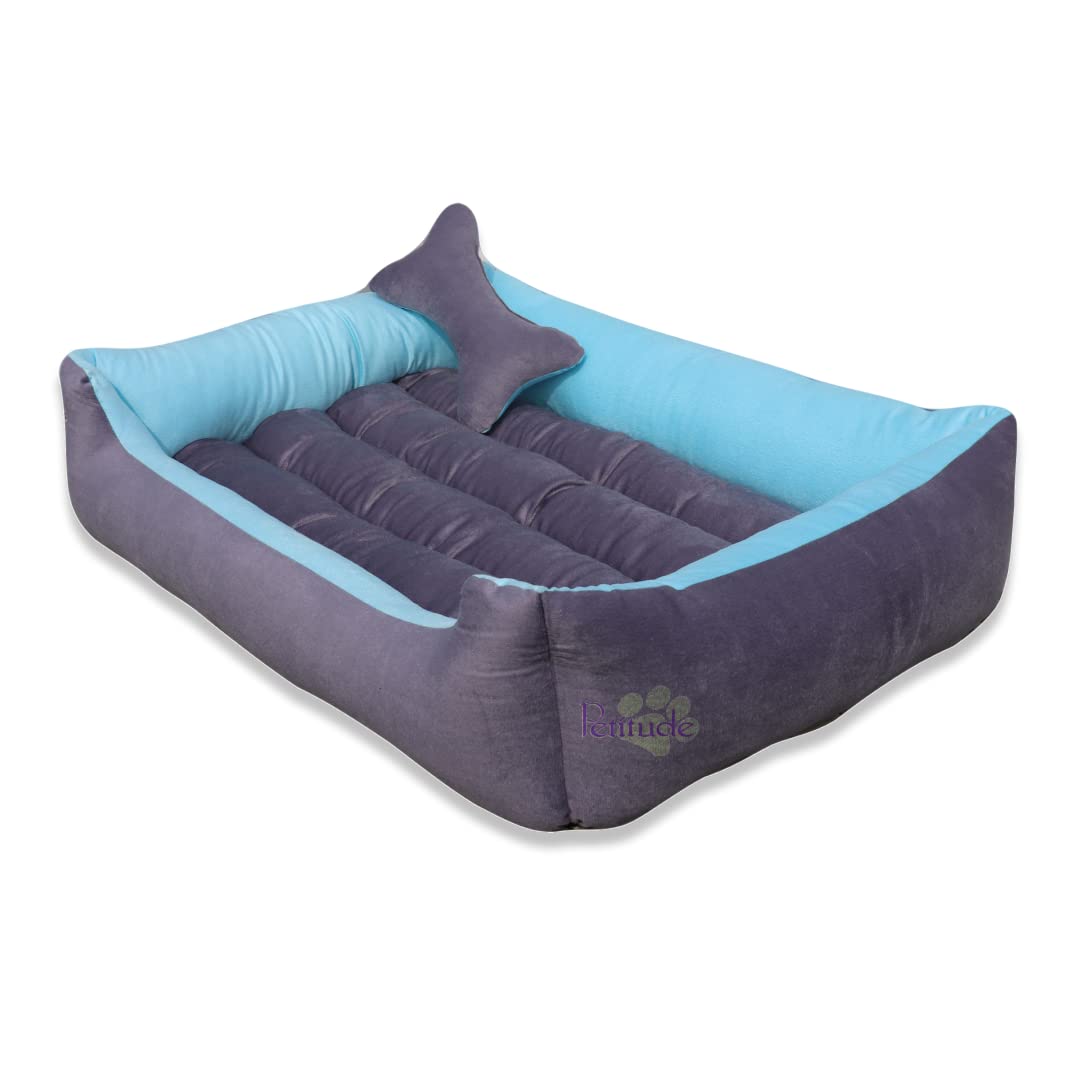 Petitude Premium Small Dog Bed-for Small Dogs Washable-Pet Bed for Puppy and Kitten with Slip-Resistant Bottom- Grey & Sky Blue